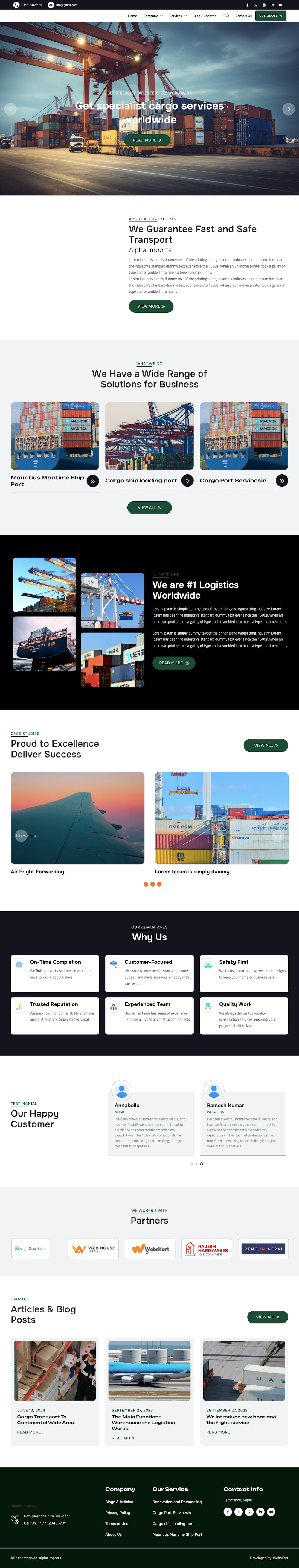 This website have all the features that needs for the Logistic service providers or company's website like, awesome Home Page, About us, team, gallery, services list, services detail, products, testimonials, projects/portfolio, Careers, blogs, contact us, inquiries, and more.